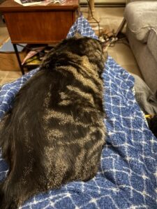 Foggy stretched out on my legs might be the coziest way to sit!